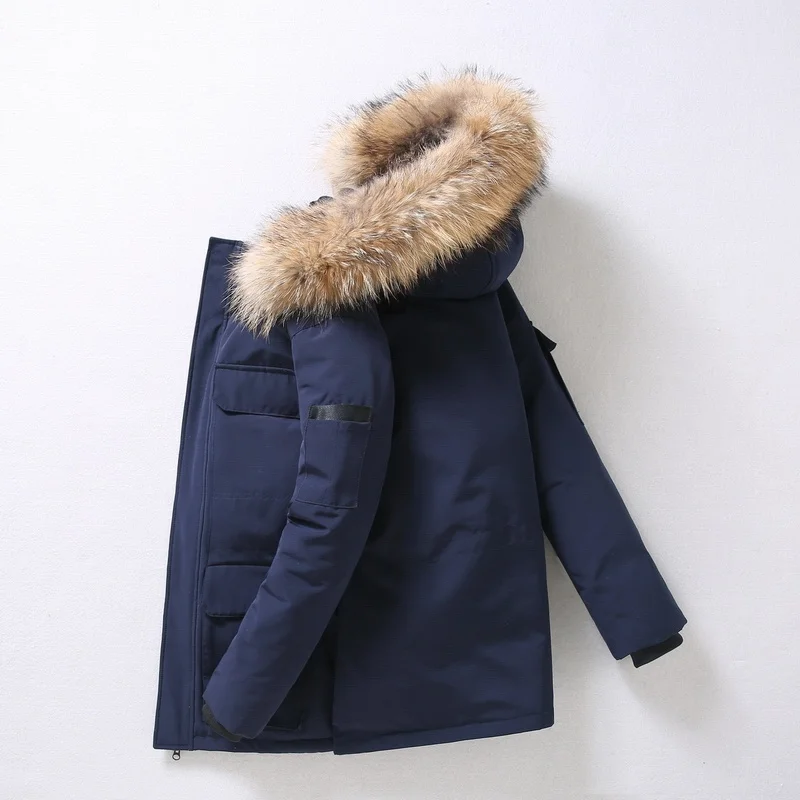 Be the first to review “Men’s Winter Down Jacket Fashion Pocket Design Large Fur Collar Windproof Parka Women’s Outdoors Ski White Duck Down Warm Coat”