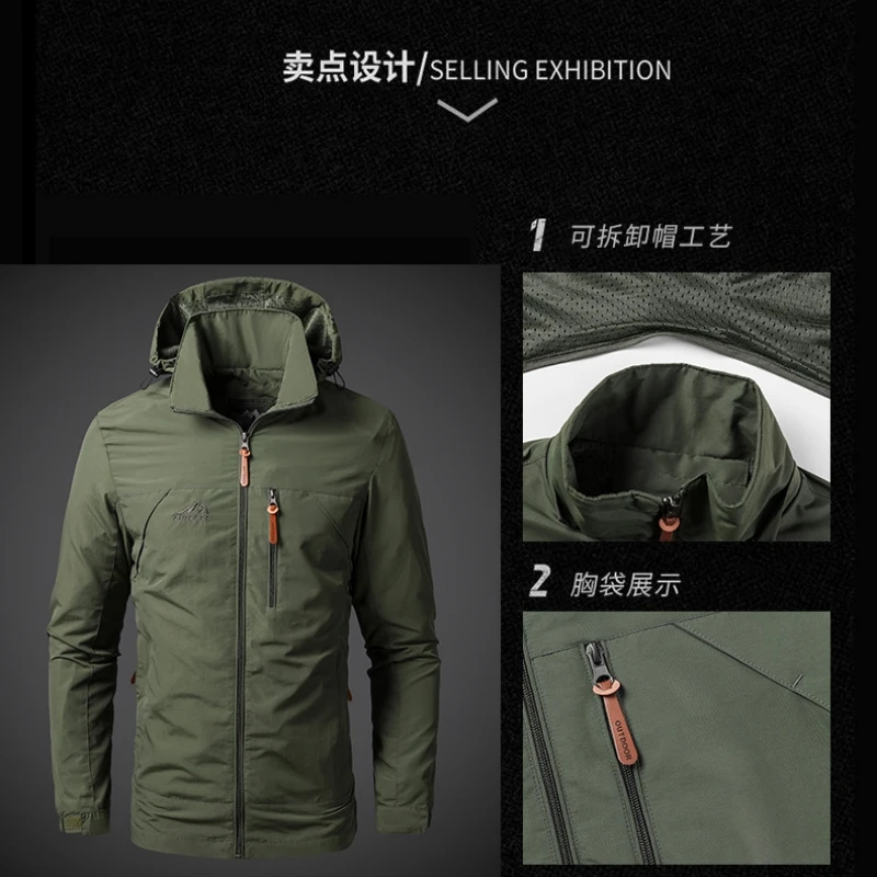 whether full opening: Yes High-concerned chemical: None Craft of Weaving: Tatting Applicable Season: Spring And Autumn Applicable Scene: CASUAL Place Of Origin: China (mainland) Decoration: Embroidery Sleeve Style: regular Model Number: 8817 Hooded: Yes Type: Loose Detachable Part: Hat Detachable Thickness: Thin Lining Material: POLYESTER Closure Type: Zipper Cuff Style: CONVENTIONAL Pattern Type: Solid Collar: With Nood Style: Military Clothing Length: regular Material: POLYESTER Origin: Mainland China CN: Fujian Outerwear Type: JACKETS Gender: Men Item Type: Outerwear & Coats